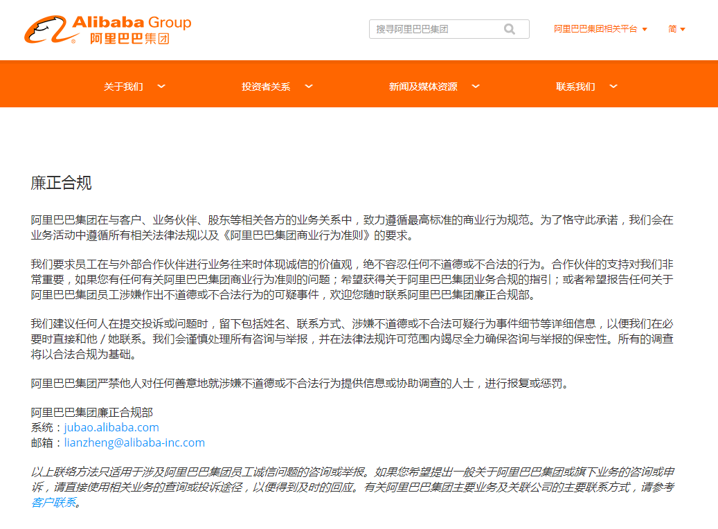 2009年,阿里出台了《商业行为准则》。次年,淘宝率先设立廉正部门,重点查处、打击员工违规行为。2012年,阿里设立了集团一级部门“廉正合规部”,着力于内部腐败调查,清除不正当的利益输送问题。