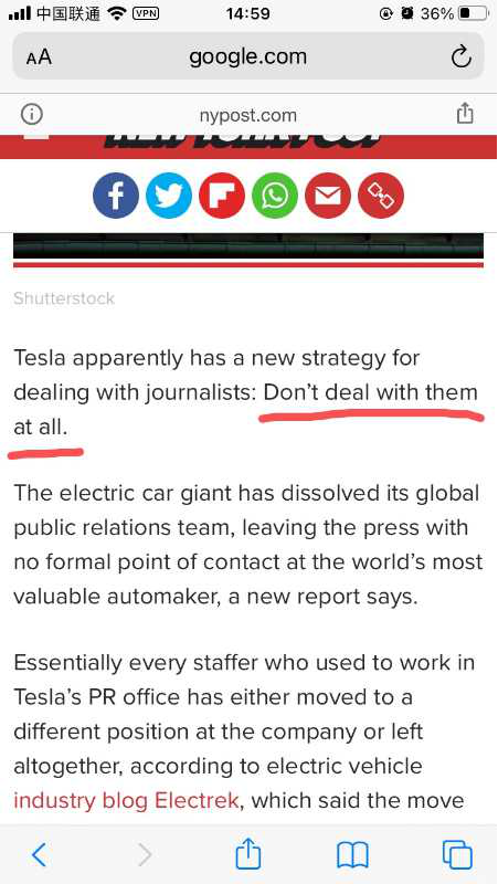 如果你有去看一些外媒新闻,会发现特斯拉宣布的其实是“不再接待媒体”,“媒体不再有机会与企业直接沟通”。